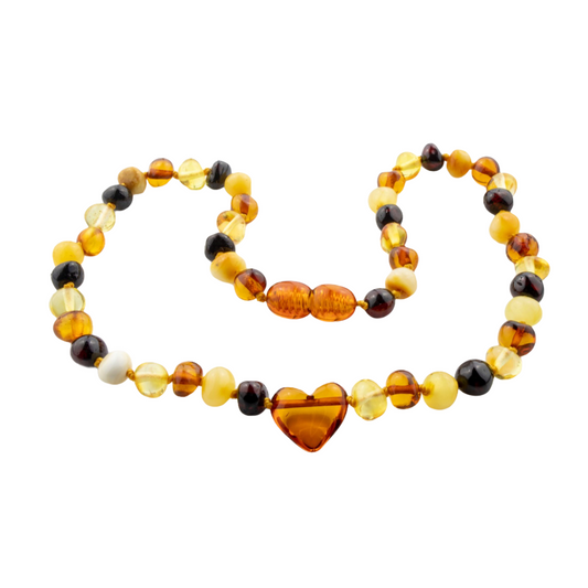 Colar de Âmbar Báltico Bebê Mel Claro com coração 32-33 cm