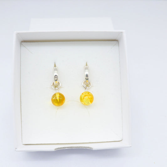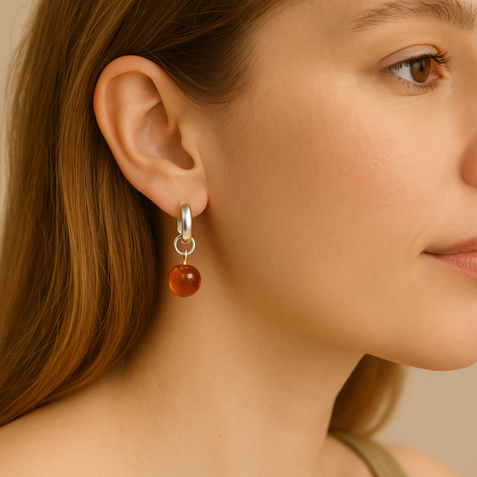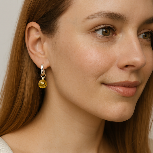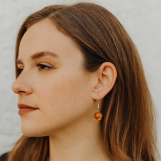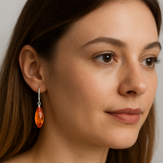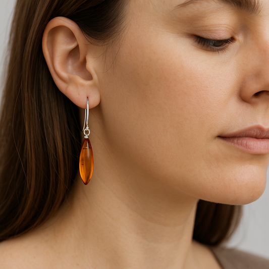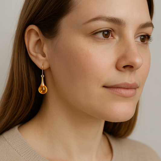 Brinco Gota Âmbar Báltico – Elegância Natural & Brilho Solar