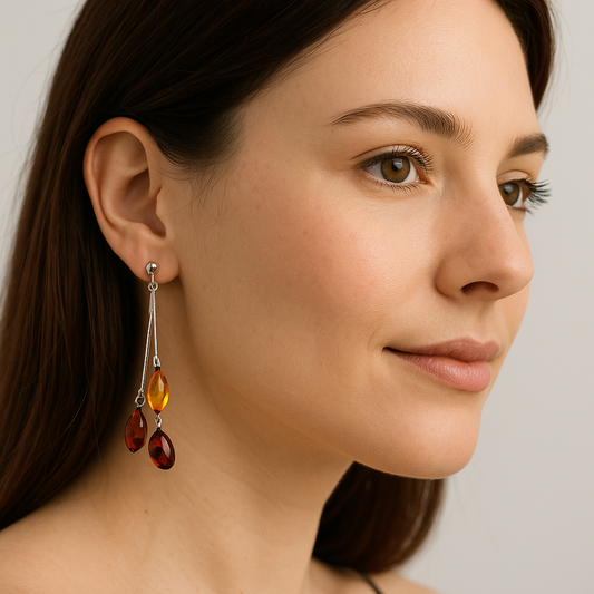 Brinco Âmbar Natural Duo – Longo com Gotas Bálticas