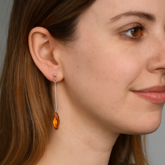 Brincos de âmbar natural do Báltico com prata 925. Oferecemos uma ampla variedade de cores de âmbar, possibilitando que encontre brincos que se adequem ao seu gosto. Nossos brincos de âmbar exclusivos, com design moderno, são elegantes para qualquer ocasião. Desde opções discretas para o dia a dia até modelos luxuosos e distintos, certamente encontrará os brincos de âmbar mais adequados para si. Os brincos que têm contato direto com a pele são antialérgicos, tornando-os adequados para qualquer mulher.