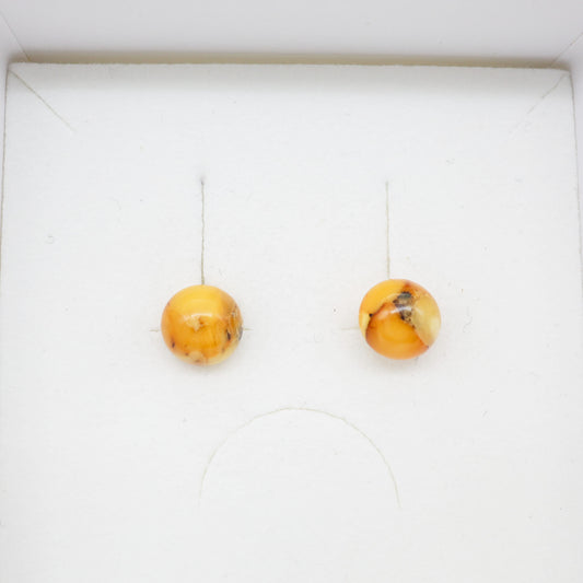 Brinco Âmbar Báltico Esfera Natural | Prata 925