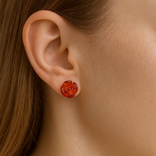 Brinco de Âmbar Báltico – Flor Rosa Mel escuro
