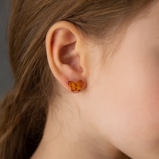 Brinco Borboleta de Âmbar Báltico – Prata 925