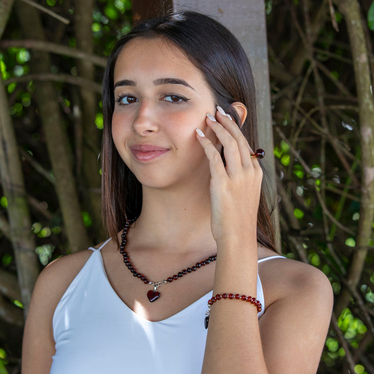 Âmbar Báltico Mel Claro com coração 38-40 cm