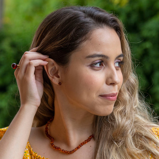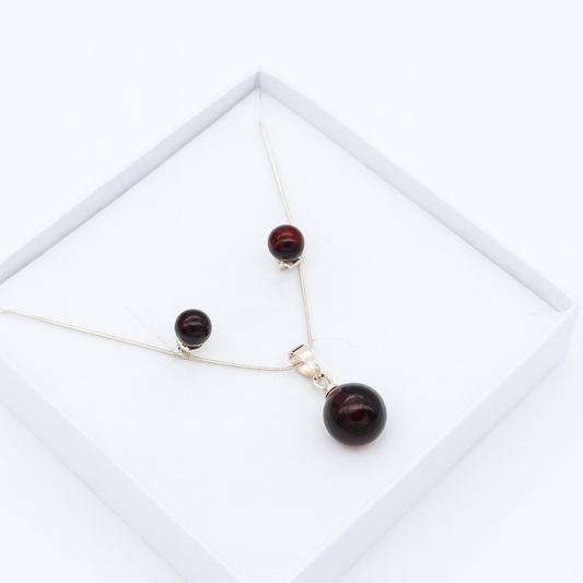 Elegância Carmim – Conjunto Colar e Brincos em Âmbar Báltico