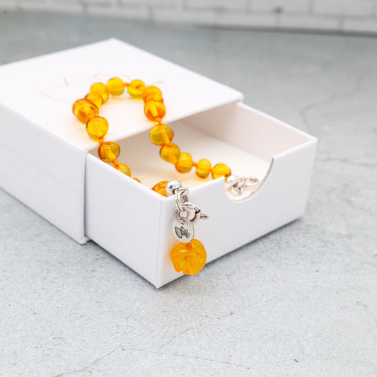 Pulseira de Âmbar Báltico Mel Claro 18 cm com fecho de prata