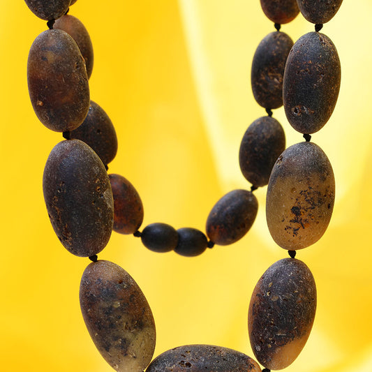 Unpolished Dark Green Baltic Amber Necklace 40 cm