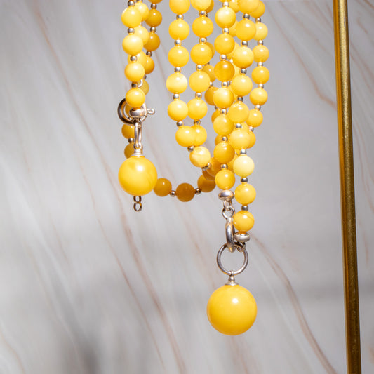 Conjunto de Âmbar Báltico Milky com Prata 925 – Colar 70 cm + Pulseira Ajustável