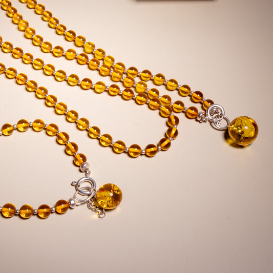 Conjunto de Âmbar Báltico Honey com Prata 925 – Colar 70 cm + Pulseira Ajustável