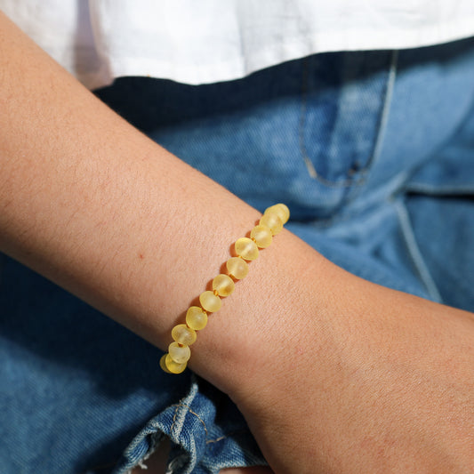 Unpolished Lemon Baltic Amber Bracelet 18 cm