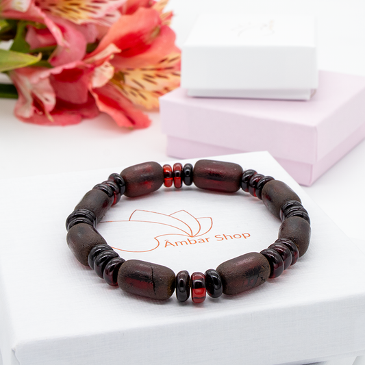 Unpolished Dark Honey Baltic Amber Bracelet 18 cm