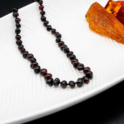 This model is a favorite for boys, but its elegance looks incredible on both sexes. Make your little one dazzle with the Polished Cherry Baby Amber Necklace, enjoying the therapeutic benefits of Baltic Amber. Take care of your child with style and well-being! Here are some of its incredible benefits: