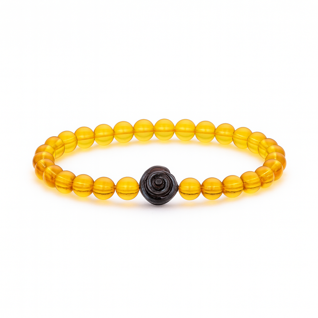 When amber comes into contact with the skin, body heat warms it, gently releasing small amounts of the therapeutic substance. In this way, the skin gradually absorbs this active substance, succinic acid, in small doses.
