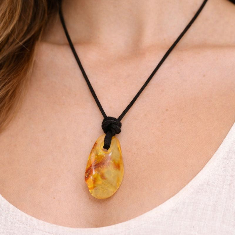 O âmbar liberta naturalmente ácido succínico em contacto com a pele, conhecido pelas suas propriedades terapêuticas.