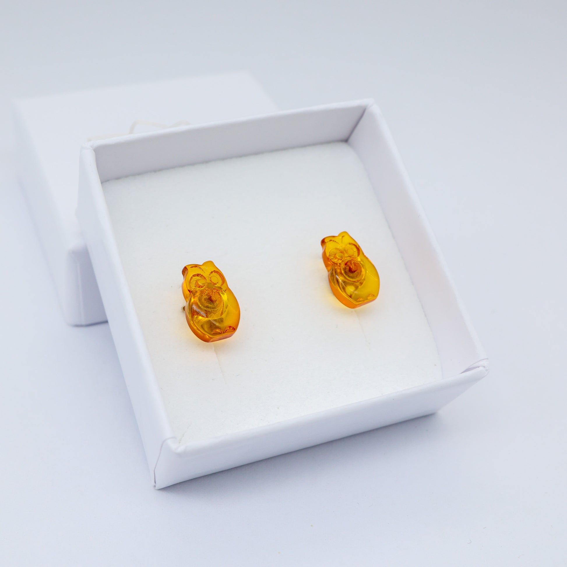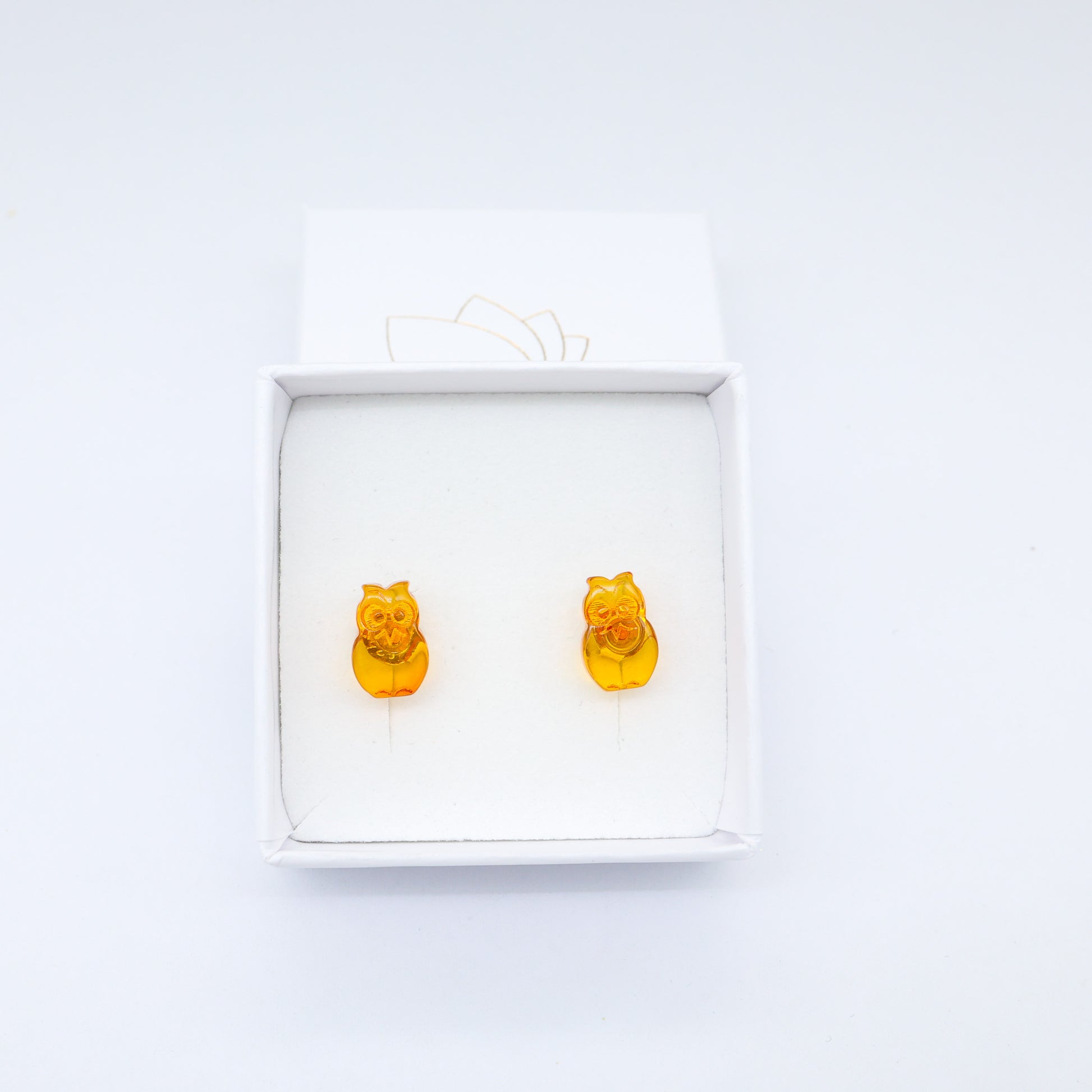 Delicados e cheios de charme, estes brincos em formato de coruja são feitos em âmbar báltico natural na cor mel-dourado, com brilho translúcido que reflete a luz de forma suave e encantadora. Um modelo leve, confortável e carinhosamente escolhido para quem ama símbolos de proteção, sabedoria e boas energias.