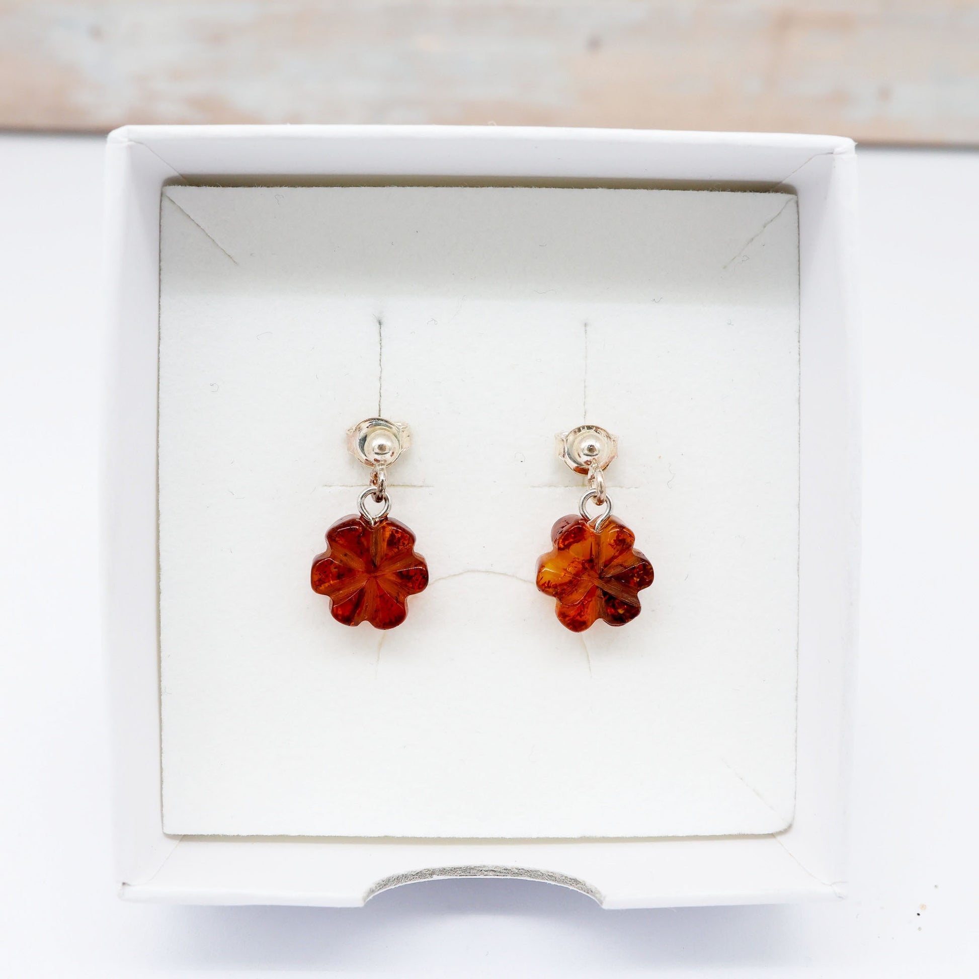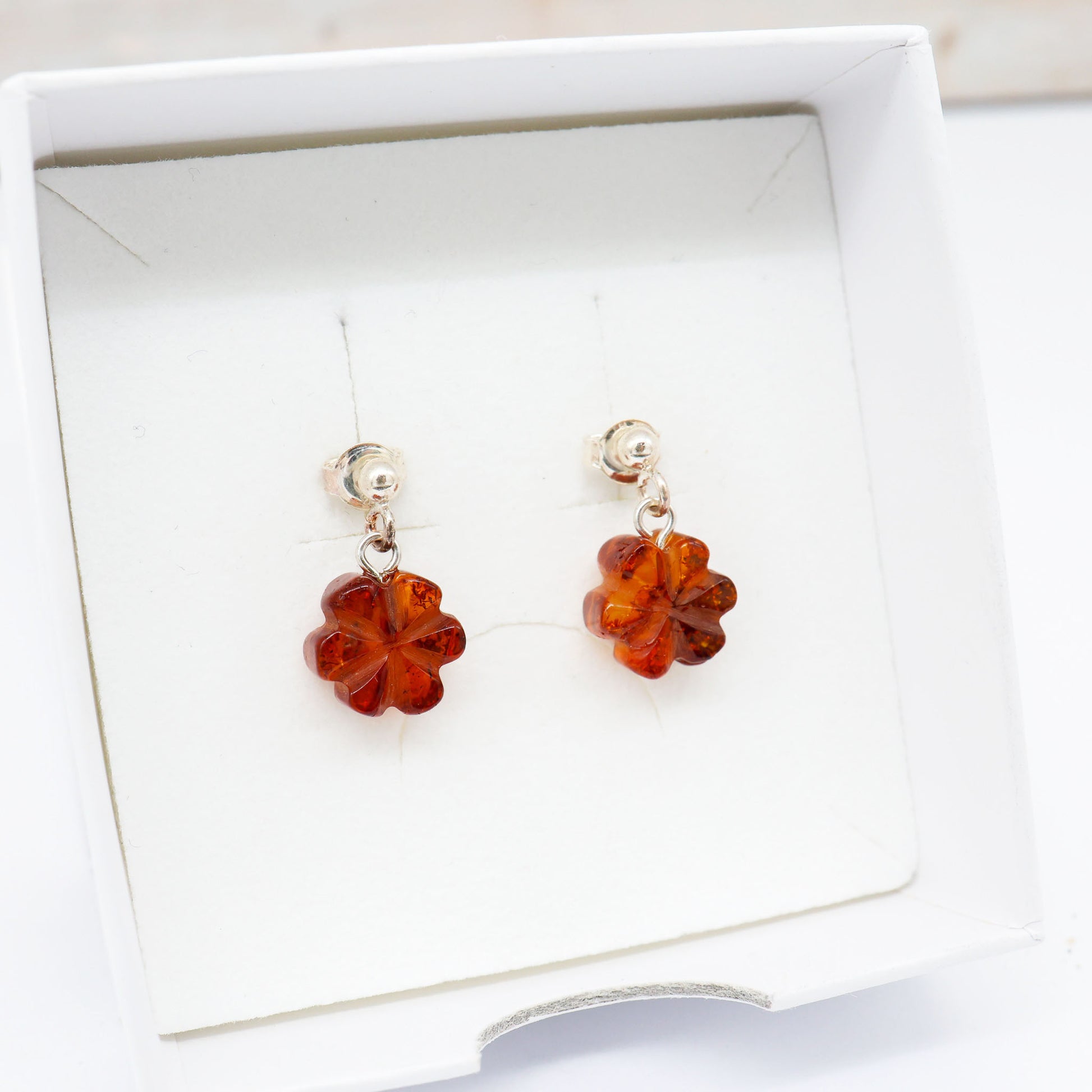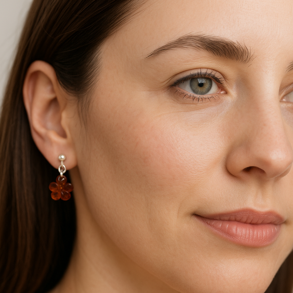 Brinco Âmbar Báltico Flor – Delicadeza e Charme Natural