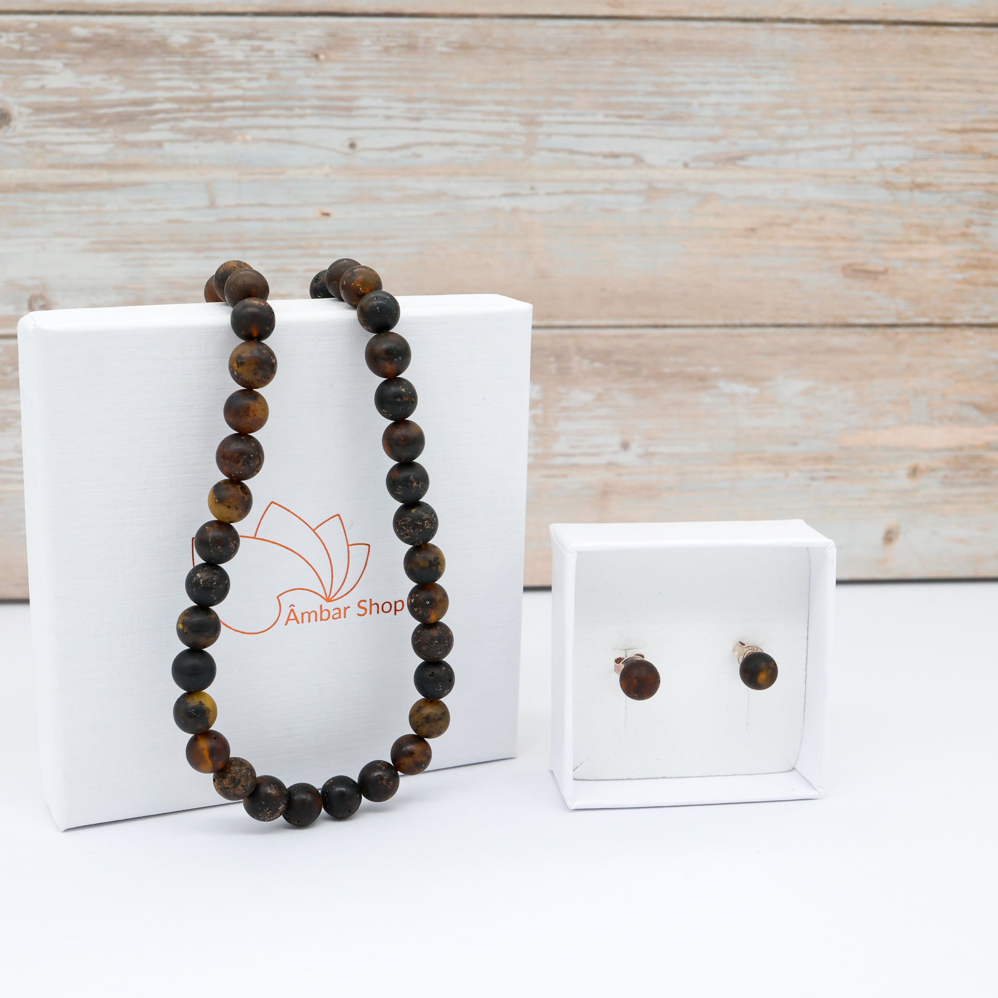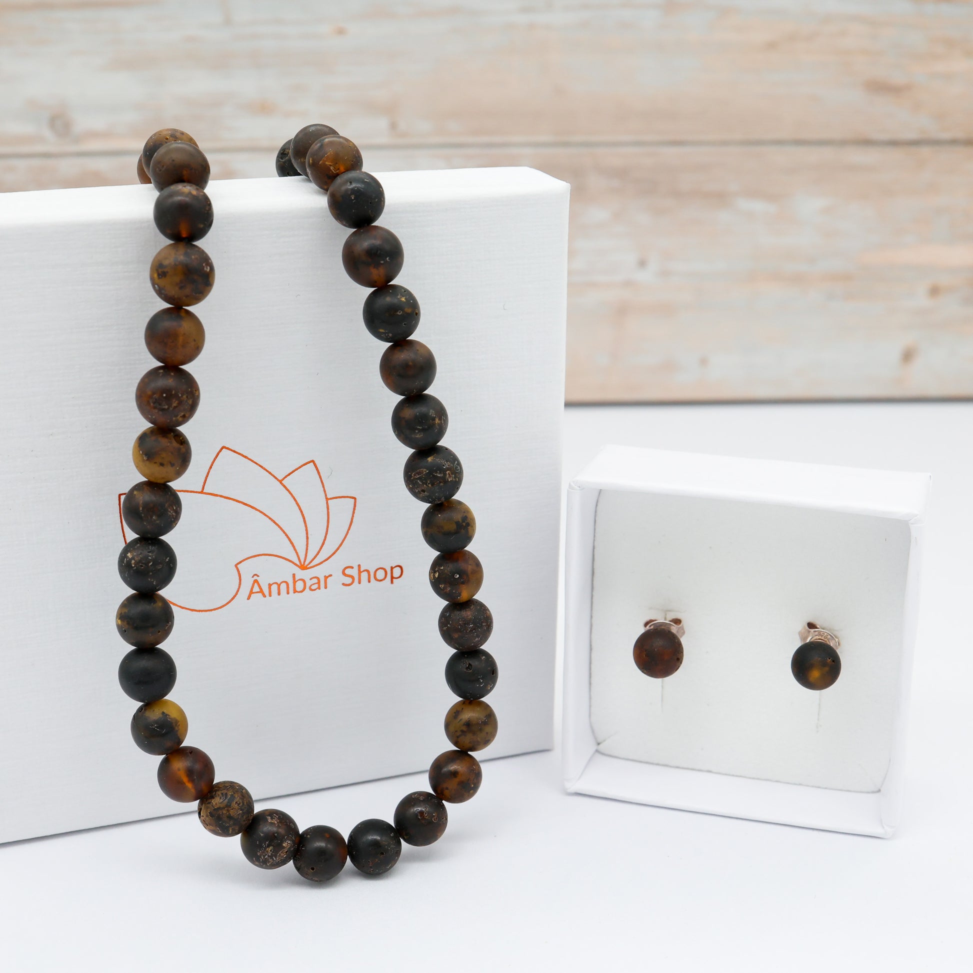 Descubra a beleza natural e elegante deste conjunto exclusivo de âmbar báltico verde escuro não polido, perfeito para quem aprecia joias autênticas, rústicas e cheias de personalidade. Cada peça é cuidadosamente selecionada para manter o encanto bruto do âmbar, revelando sua textura original e energia natural.