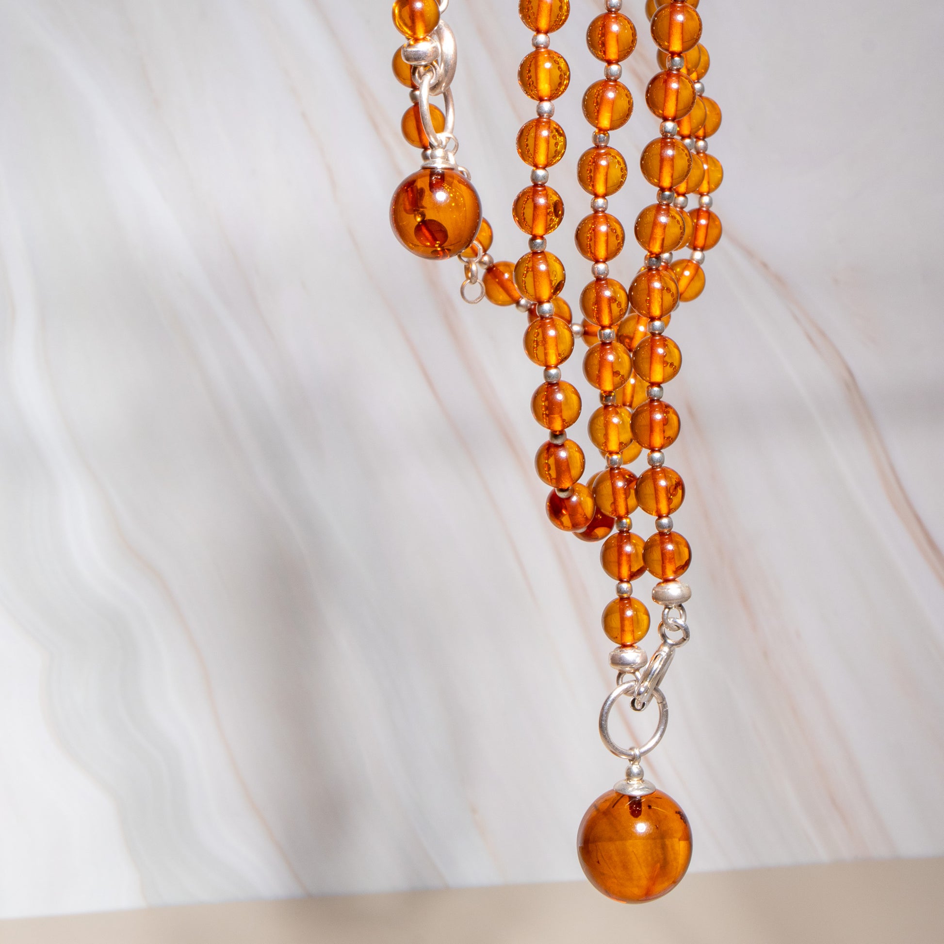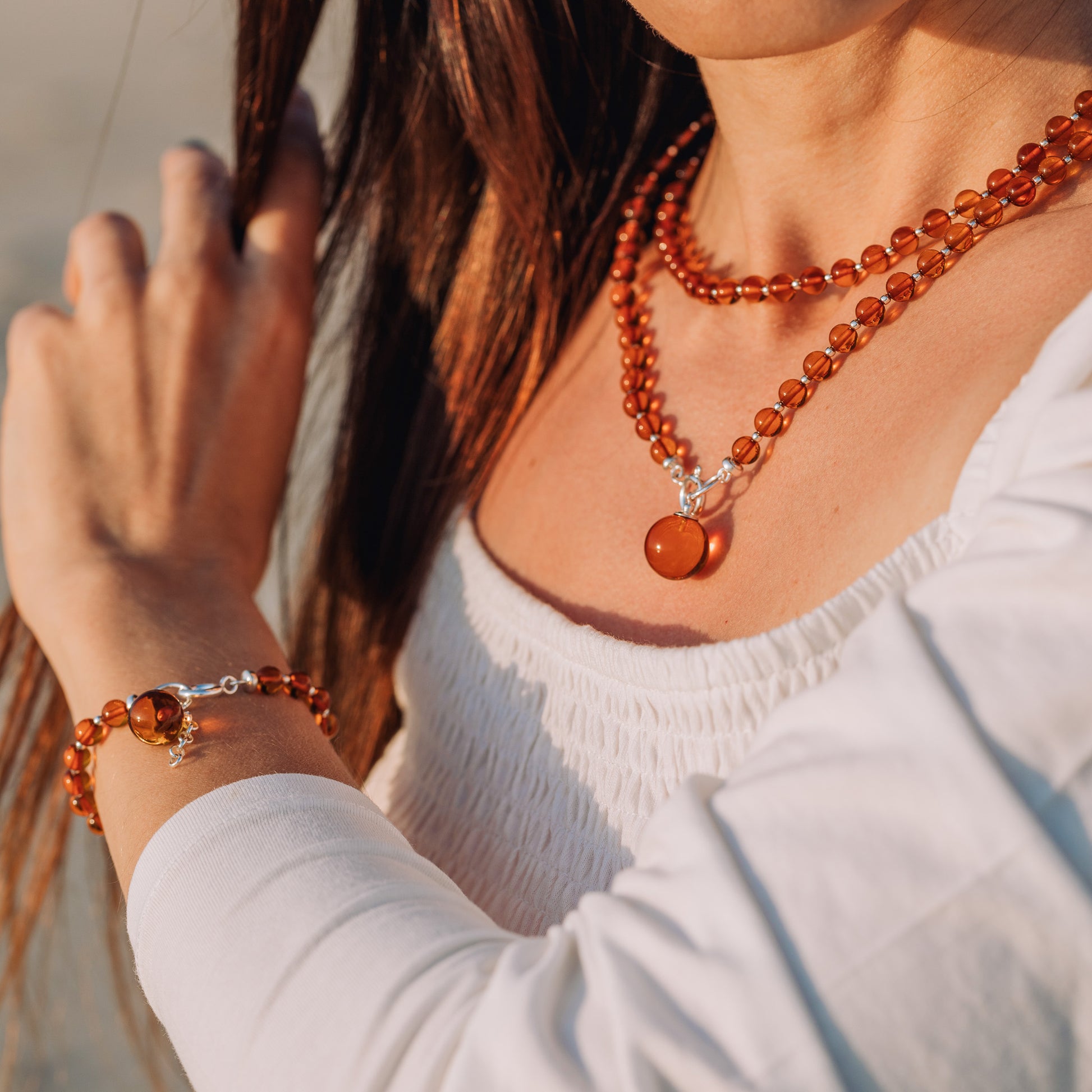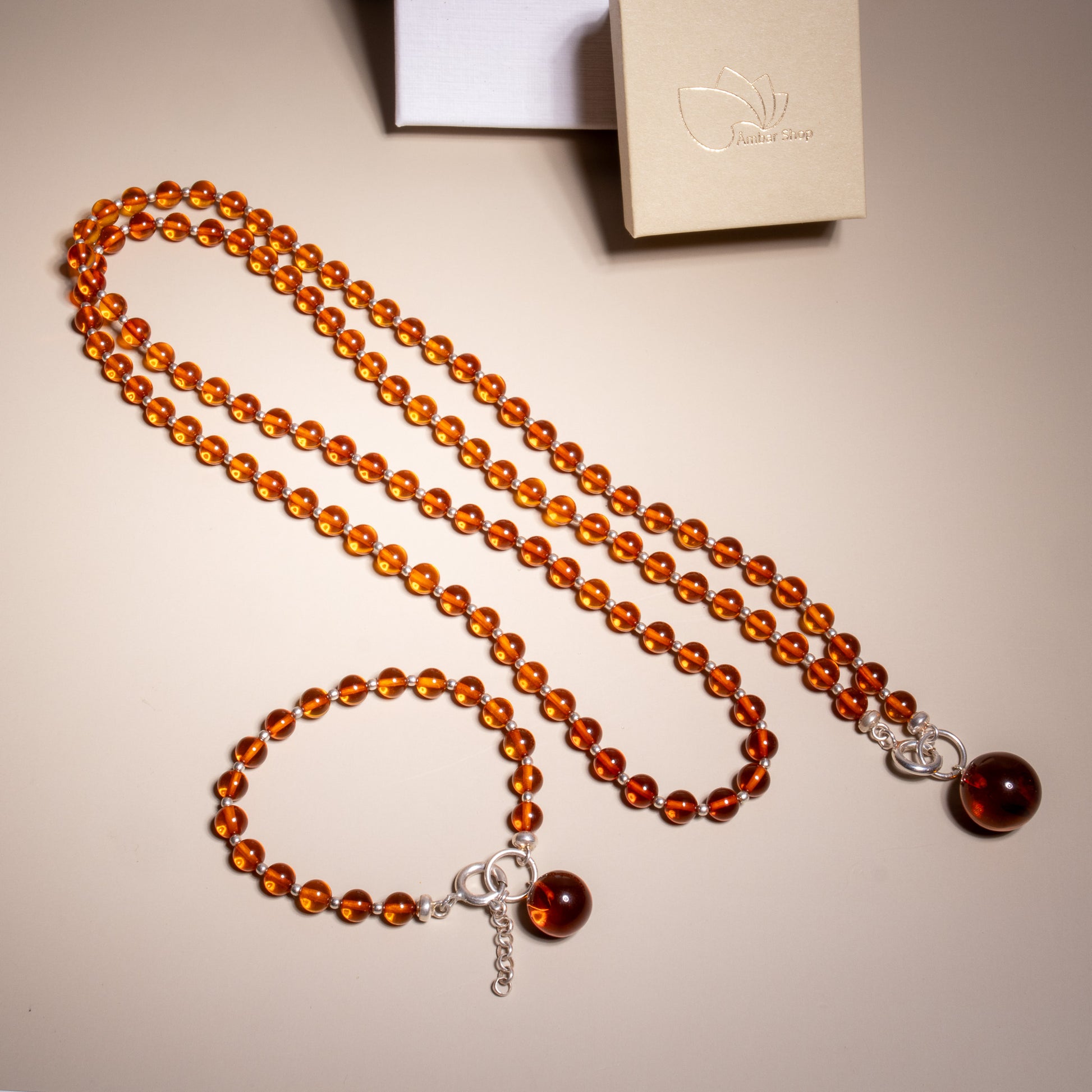 Conjunto de Âmbar Báltico Cognac com Prata 925 – Colar 70 cm + Pulseira Ajustável